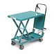 U heft de mobiele tafel makkelijk door middel van een voetpedaal. De heftafel kunt u gedoseerd laten dalen d.m.v. de ergonomische handgreep. De daalbeveiliging voorzien van veiligheidspal voorkomt dat de tafel ongewenst zakt. U kunt de heftafel makkelijk vastzetten met de twee geremde wielen.